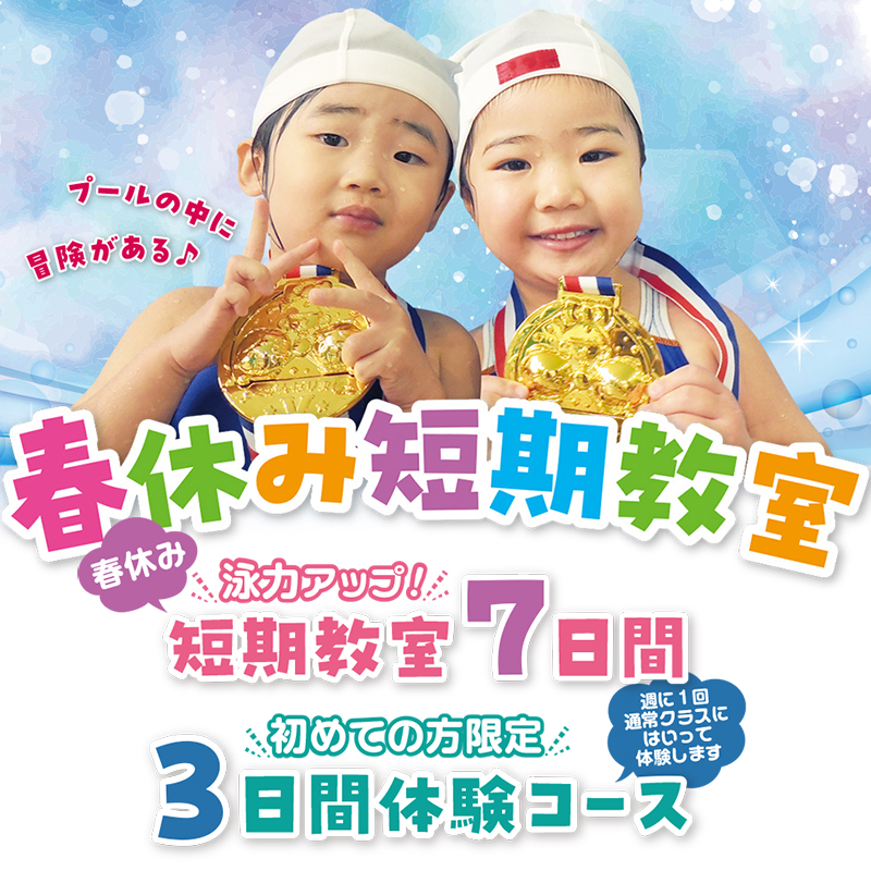 楽しく上達できる春休み短期教室(短期教室7日間、3日間体験コース)を2/19(木)10時30分から受付開始